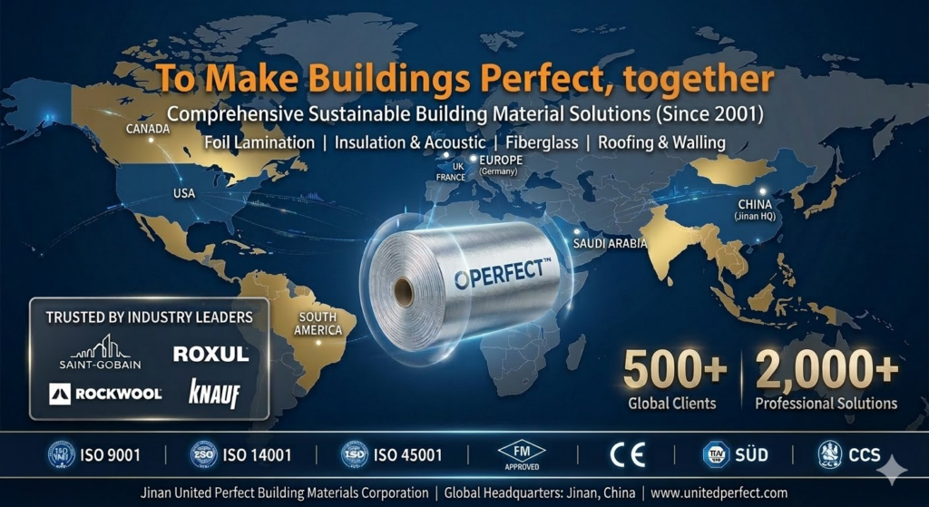 Since its inception in 2001, Jinan United Perfect Building Materials Corporation has been driven by our core corporate vision: “To Make Buildings Perfect, together.” As a premier global manufacturer of high-performance and sustainable building solutions, we provide best-in-class materials under the OPERFECT™ brand, specializing in Foil Laminations, Roofing & Walling systems, Insulation & Acoustic solutions, and Fiberglass composites.