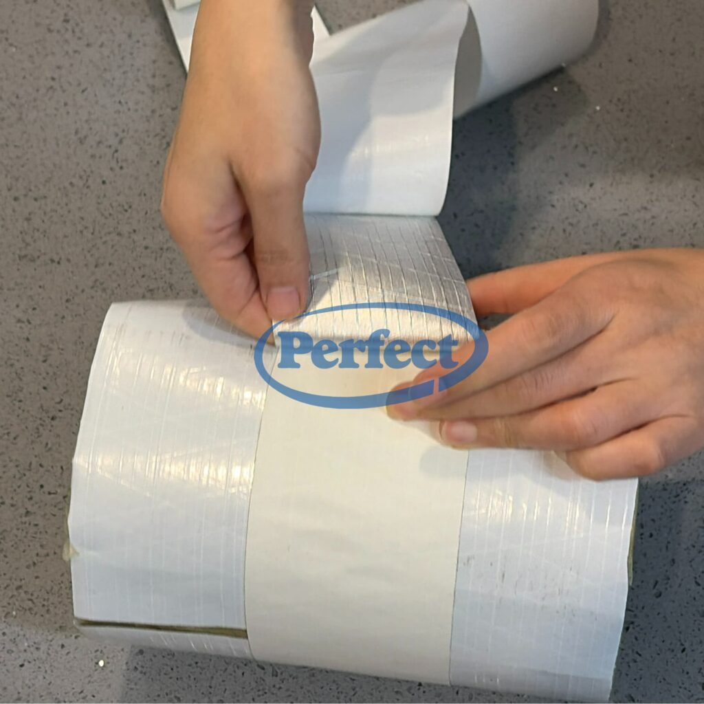 Most products adopt a composite base material of kraft paper, fiberglass mesh, and metal foil. It offers excellent puncture and tear resistance, and can withstand significant shear force—remaining intact even with slight impacts during construction or use, thus ensuring sealing integrity.